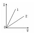 2、选择题 如下图所示为两电阻R1和R2的伏安特性曲线。若在两电阻两端加相同的电压,关于它们的电阻值及发热功率比较正确的是(? )