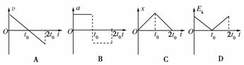 4、选择题 在地面某处将一金属小球竖直向上抛出,上升一定高度后再落回原处,若不考虑空气阻力,则下列能正确反映小球的速度、加速度、位移和动能随时间变化关系的是(取向上为正方向)( ?)