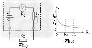 1、实验题 (1)多用电表测未知电阻阻值的电路如图(a)所示,电池的电动势为E、内阻为r,?R0为调零电阻,Rg为表头内阻,电路中电流I与待测电阻的阻值Rx关系图像如图(b)所示,则该图像的函数关系式为_____________________;