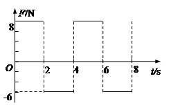 2、计算题 一个质量为2kg的物体静止在足够大的水平地面上,物体与地面间的动摩擦因数。从t=0开始,物体受到一个大小和方向呈周期性变化的水平力F的作用,力F?随时间的变化规律如图9所示。重力加速度