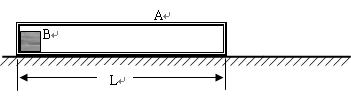 4、计算题 如图所示在粗糙的水平面有一个长盒A,盒的内部完全光滑,盒子长度为L,盒与水平面间的动摩擦因数μ=3/4,盒紧靠左侧有一物块B,A与B均处在某一特定场区中,场区对A、B均始终有向右的恒定作用力F=mg/2,已知盒子质量与物块的质量均为m。现同时释放A、B,此后B与A每次碰撞都是完全弹性碰撞(即每次碰撞均交换速度,且碰撞时间极短,可以忽略不计)。已知重力加速度为g。求: