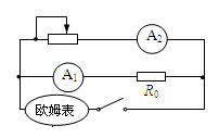 本题解析:(1)电路如图所示:由于无电压表,所以把电流表A1和定值电阻R0串联改装成电压表使用;(2)作出I2-I1图线如图所示;