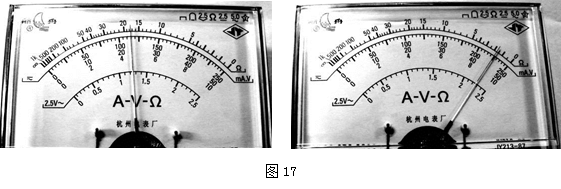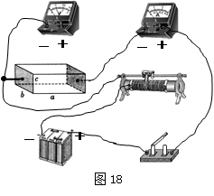 其左、右两侧面为金属薄板(电阻极小),其余四面由绝缘材料制成,左右两侧带有接线柱。容器内表面长a=40cm,?宽b=20cm,高c=10cm。将水样注满容器后,?进行以下操作:分别用多用电表欧姆挡的“×1k”、“× 100”两档粗测水样的电阻值时,表盘上指针如图17所示,则所测水样的电阻约为?Ω。