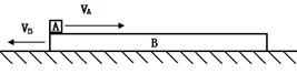 5、计算题 (14分)如图所示,质量mA=1kg的小物块以向右VA=4.0m/s的初速度滑上质量mB=1.0kg以向左初速度VB=5.0m/s的长木板,已知A、B之间的动摩擦因数μ1="0.20" ,B与地面之间的动摩擦因数μ2=0.40,整个过程中小物块并未从长木板上滑下,g取10 m/s2。则: