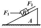 3、选择题 如图所示,斜劈A静止放置在水平地面上。质量为m的物体B在外力F1和F2的共同作用下沿斜劈表面向下运动。当F1方向水平向右,F2方向沿斜劈的表面向下时,斜劈受到地面的摩擦力方向向左。则下列说法中正确的是