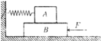 5、选择题  如图所示,A.B?两物体叠放在的水平地面上,各接触面的动摩擦因数均为0.5(最大静摩擦可视为等于动摩擦),A?物体质量m=10kg,B?物体质量M=30kg.处于水平位置的轻弹簧一端固定于墙壁,另一端与A?物体相连.弹簧处于自然状态,其劲度系数为250N/m.现有一水平推力F?作用于物体B?上,使B?物体缓慢地向墙壁移动,下列说法正确的是(g?取10m/s2)