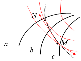 1、选择题  图中三条实线a、b、c表示三个等势面。一个带电粒子射入电场后只在电场力作用下沿虚线所示途径由M点运动到N点,由图可以看出