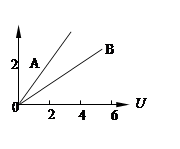 1、实验题 如图所示,小灯泡的伏安特性曲线A、B,由图可知,RA RB,两者并联时流过的电流IA IB(填大于、小于、等于)