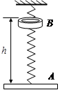 3、计算题 如图所示,一轻质弹簧上端悬挂于天花板,下端系一质量为m1=2.0kg的物体A,平衡时物体A距天花板h1=0.60m。在距物体A正上方高为h=0.45m处有一个质量为m2="1." 0kg的物体B,由静止释放B,下落过程某时刻与弹簧下端的物体A碰撞(碰撞时间极短)并立即以相同的速度运动。已知两物体不粘连,且可视为质点。g=l0m/s2。求: