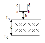 2、选择题  如图所示,相距为d 的两水平虚线L1和L2之间是方向水平向里的匀强磁场,磁感应强度为B,正方形线框abcd边长为L,L<d,质量为m,电阻为R,将线圈在磁场上方高为h处,由静止释放,ab边刚进入磁场时速度为 ,ab边刚出磁场时速度也为