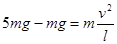 4、计算题 如图所示,让摆球从图中的A位置开始下摆,正好摆到最低点B位置时线被拉断.设摆线长l,悬点到地面的竖直高度为3l,绳子能承受的最大拉力为5mg,不计空气阻力,求: