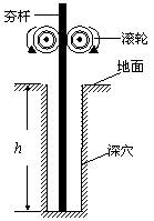 4、简答题 如图所示是建筑工地上常用的一种“深穴打夯机”。工作时,电动机带动两个紧压夯杆的滚轮匀速转动将夯杆从深为h的坑中提上来,当两个滚轮彼此分开时,夯杆被释放,最后夯杆在自身重力的作用下落回深坑,夯实坑底;然后两个滚轮再次压紧,夯杆再次被提上来,如此周而复始工作。已知两个滚轮边缘的线速度v恒为4m/s,每个滚轮对夯杆的正压力FN =2×104 N,滚轮和夯杆间的动摩擦因数μ =" 0.3" ,夯杆的质量m =1×10 3kg,坑深h ="6.4m" 。假定在打夯的过程中坑的深度变化不大,且夯的低端升到坑口时,速度正好为零。取g =10m/s2。试求: