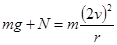 当小球以速度2v经内轨道最高点时,小球受重力G和向下的支持力N,如图,