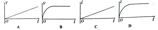 4、选择题 如图所示,水平面内有一足够长的平行金属导轨,导轨光滑且电阻不计,匀强磁场与导轨平面垂直,阻值为R的导体棒垂直于导轨静止放置,且与导轨接触良好,现闭合开关,导体棒的速度v、回路中电流i随时间变化的图像正确的是(?)