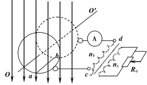 ?平行的水平轴(也是两圆环的中心轴)OO"以角速度ω匀速转动.如果变阻器的阻值为R时,通过电流表的电流为I,则
