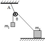 3、简答题 物块m1=2kg,m2=5kg,通过细绳经定滑轮连接,如图所示,斜绳与竖直方夹角θ=60°,m2保持静止,滑轮与绳的质量及滑轮的摩擦不计,求: