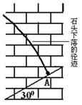 5、计算题 某同学在某砖墙前的高处水平抛出一石子,石子在空中的运动轨迹照片如图所示。从照片可看出石子恰好垂直打在一倾角为300的斜坡上的A点。已知每块砖的平均厚度为6cm,抛出点到A点竖直方向刚好相距30块砖,求: