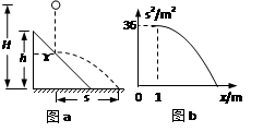 3、填空题 如图a所示,倾角为45°、高为h的斜面固定在水平地面上,小球从高为H(2h>H>h)的某处自由下落,与斜面碰撞(无能量损失)后做平抛运动。若小球做平抛运动后能直接落到水平地面上,自由下落的起始点距斜面左端的水平距离x应满足的条件是?(用符号表示);若测得x=1m时,小球平抛运动的水平射程s最大,且水平射程的平方s2与x关系如图b所示,则斜面的高h应为?m。