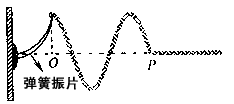 1、选择题  将固有频率为10Hz的弹性振片的一端固定,另一端系一轻绳。某时刻给振片一个初速度让其自由振动,经过一段时间绳上呈现如图所示的波形,已知OP=50cm。则