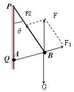 本题解析:解:以小球为研究对象,球受到重力G,A的斥力F1和线的拉力F2三个力作用,作出力图,如图.作出F1、F2的合力F,则由平衡条件得 F=G.根据△FBF1∽△PQB得