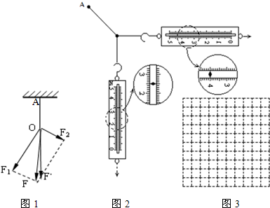 (2)实验过程中,将橡皮筋的一端固定在A点,另一端拴着两根细绳,每根细绳分别连着一个量程为5N、最小刻度为0.1N的弹簧测力计.沿着两个不同的方向拉弹簧测力计.当橡皮筋的活动端拉到O点时,两根细绳相互垂直.如图2所示,这时弹簧测力计的读数分别为______N和______N(只须读到0.1N).