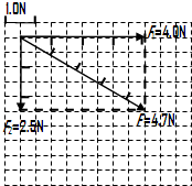(3)取如图所示的两格表示1.0N,则可得出F1、F2,由上图得出两力的方向;作出平行四边形,即其对角线的长度表示力的大小,箭头的指向表示力的方向,故答案如图所示:求得F=4.7N.