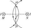 3、选择题 如图7所示,通电直导线ab位于两平行导线横截面MN的连线的中垂线上,当平行导线通以同向等值电流时,以下说法中正确的是(?)