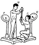 的甲、乙两同学,分别静止于水平地面的台秤P、Q上,他们用手分别竖直牵拉一只弹簧秤的两端,稳定后弹簧秤的示数为