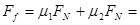 5、选择题 有一直角V形槽,固定放在水平面上,槽的两侧壁与水平面夹角均为45°,如图所示,有一质量为m的正方体均匀木块放在槽内,木块与槽两侧面间的动摩擦因数分别为μ1和μ2(μ1>μ2))。现用水平力推木块使之沿槽运动,则木块受到的摩擦力为