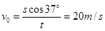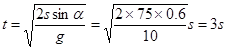 5、选择题 如图,从斜面上的点以速度υ0水平抛出一个物体,飞行一段时间后,落到斜面上的B点,己知AB=75m, a=37°,不计空气阻力,下列说法正确的是