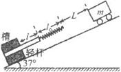 2、选择题 倾角为37°的光滑斜面上固定一个槽,劲度系数k=40N/m、原长l0=0.6m的轻弹簧下端与轻杆相连,开始时杆在槽外的长度l=0.3m,且杆可在槽内移动,杆与槽间的滑动摩擦力大小f=12N,杆与槽之间的最大静摩擦力等于滑动摩擦力.质量m=2kg的小车从距弹簧上端L=0.6m处由静止释放沿斜面向下运动,己知弹簧的弹性势能表达式Ep=,式中x为弹簧的形变量.g取10m/s2,sin37°=0.6,关于小车和杆运动情况,下列说法正确的是(? )