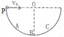 3、选择题  如图所示,水平固定半径为R的半球型碗的球心为0点,最低点为B点,A点在左边的内壁上,C点在右边的内壁上,在碗的边缘P点向着球心以速度v0平抛一个小球,抛出点P及O、A、B、C点在同一个竖直面内,已知重力加速度为g,不计空气阻力,下列说法正确的是(  )