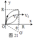 消去参数θ可知磁场区域的下边界满足的方程为x2+(R-y)2=R2,(x>0,y>0)
