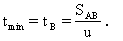 比较上面两式易得知:tA>tB.又由于从A点到达对岸的所有路径中AB最短,故