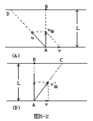 设船头垂直河岸渡河,如图5-2(B)所示,所需的时间为tB,则