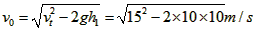 5、计算题 把质量为0.5kg的石块从离地面高为10m的高处以30°斜向上方抛出,石块落地时的速度为15m/s,求石块抛出的初速度大小。(g=10m/s2)