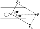 由F甲=200 N,F乙=200?N可推知F甲与F乙垂直,故乙用力的方向与航向成斜向右下30°角.