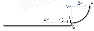 4、计算题 (18分)如图所示,一滑板B静止在水平面上,上表面所在平面与固定于竖直平面内、半径为R的1/4圆形光滑轨道相切于Q。一物块A从圆形轨道与圆心等高的P点无初速度释放,当物块经过Q点滑上滑板之后即刻受到大小F=2μmg、水平向左的恒力持续作用。已知物块、滑板的质量均为m,滑板与水平面间的动摩擦因数μ,物块与滑板间的动摩擦因数3μ,物块可视为质点,重力加速度取g.