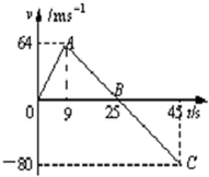 1、简答题 一空间探测器从某一星球表面竖直升空,其速度随时间的变化情况如图所示,图线上A、B、C三点对应的时刻分别为9s、25s和45s.试求: