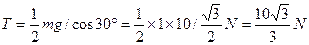 本题解析:由题意可知:Fc="mg=100N?" 将Fc分解为沿AC方向的FA和沿BC方向的FB两个分力,由三角形定则可知:FA=FC·cos30°=50N? FB=Fc·sin30°=50N