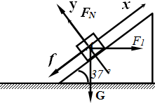 3、简答题 物体A在水平力F1=500N的作用下,沿倾角θ=37°的斜面匀速上滑,物休A所受的重力G=500N.求斜面对物体A的支持力和A与斜面的动摩擦因数μ.(sin37°=0.6,cos37°=0.8)