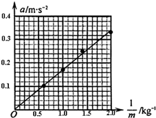 实验次数 | 1 | 2 | 3 | 4 a(m/s2) 0.332 0.250 0.167 0.101 M(Kg) 0.50 0.71 1.00 1.67 1/m(1/Kg) 2.00 1.41 1.00 0.60 |