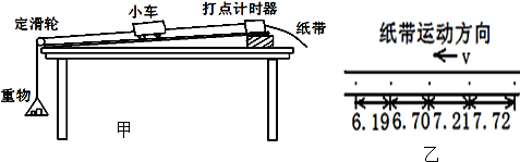 (1)如图乙为某次试验的得到的纸带,实验数据(单位:cm)如表,且相邻计数点之间还有4个点未画出,根据纸带可求出小车的加速度大小为______m/s2.(保留两位有效数字)