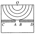 如图所示是观察水面波衍射的实验装置,AC和BD是两块挡板,AB是一个孔,O是波源,图中已画出波源所在区域波的传播情况,每两条相邻波纹(图中曲线)之间距离表示一个波长,则波经过孔后的传播情况,下列描述中正确的是(? )