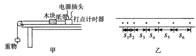 5、实验题 在探究加速度与物体质量、物体受力的关系实验中,实验装置如图甲所示:一木块放在水平长木板上,左侧拴有一不可伸长的细软线,跨过固定在木板边缘的滑轮与一重物相连,重物的质量为m。木块右侧与穿过打点计时器的纸带相连,在重物牵引下,木块在木板上向左做匀加速运动。图乙给出了打点计时器在纸带上打出的一些连续的点,它们之间的距离分别为s1,s2,s3,s4,s5,s6,打点计时器所用交流电周期为T0。根据以上数据求: