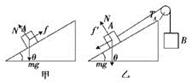本题解析:当物体A沿斜面匀速下滑时,受力图如图甲,