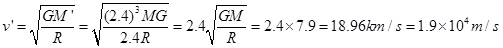 4、选择题  美国字航局2011年12月5日宜布,他们发现了太阳系外第一颗类似地球的、可适合居住的行星—“开普勒一226”,其直径约为地球的2.4倍。至今其确切质量和表面成分仍不清楚,假设该行星的密度和地球相当,根据以上信息。估算该行星的第一宇宙速度等于:(     )