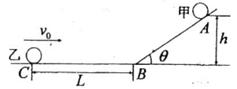 3、计算题 如图所示,水平面与斜面由光滑的小圆弧相连,一光滑小球甲从倾角θ=30°的斜面上高h=5cm的A点由静止释放,同时小球乙自C点以速度v0沿水平向右运动,甲释放后经过t=1s在水平面上刚好与乙相碰。已知C点与斜面底端B处的距离L=3.8m,小球乙与水平面的动摩擦因数μ=0.2,求乙的速度v0。(g=10m/s2)