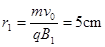 当磁场垂直纸面向里时,电荷运动的半径为:,