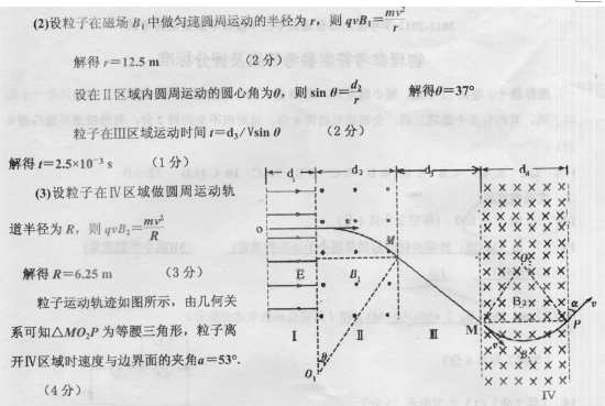 故电荷运动的总时间或(553π/45)×10-5s或(12π+13π/45)×10-5s